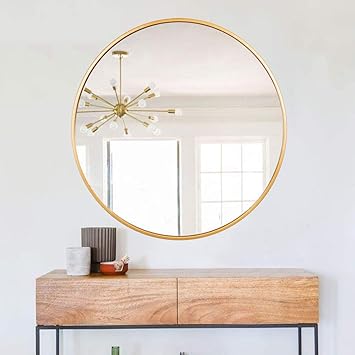 Traverse modern round beveled wall mirror, 34x34 bathroom mirror by empire art direct (2) $303 new to the mirror on mirror collection is this large, round mirror surrounded by additional alternating cut mirrors. Gold round mirror wall mounted,23.6in large circle mirrors for wall,bathroom metal frame wall mirror,big modern vanity mirror for living room bedroom 4.4 out of 5 stars 40 $79.99 $ 79. Premium wall mirror for home: Gold bathroom mirrors range from less than 5 to 75 inches in height. Tadding a large mirror instantly double the light and visual depth in a small room, making the space appear larger.